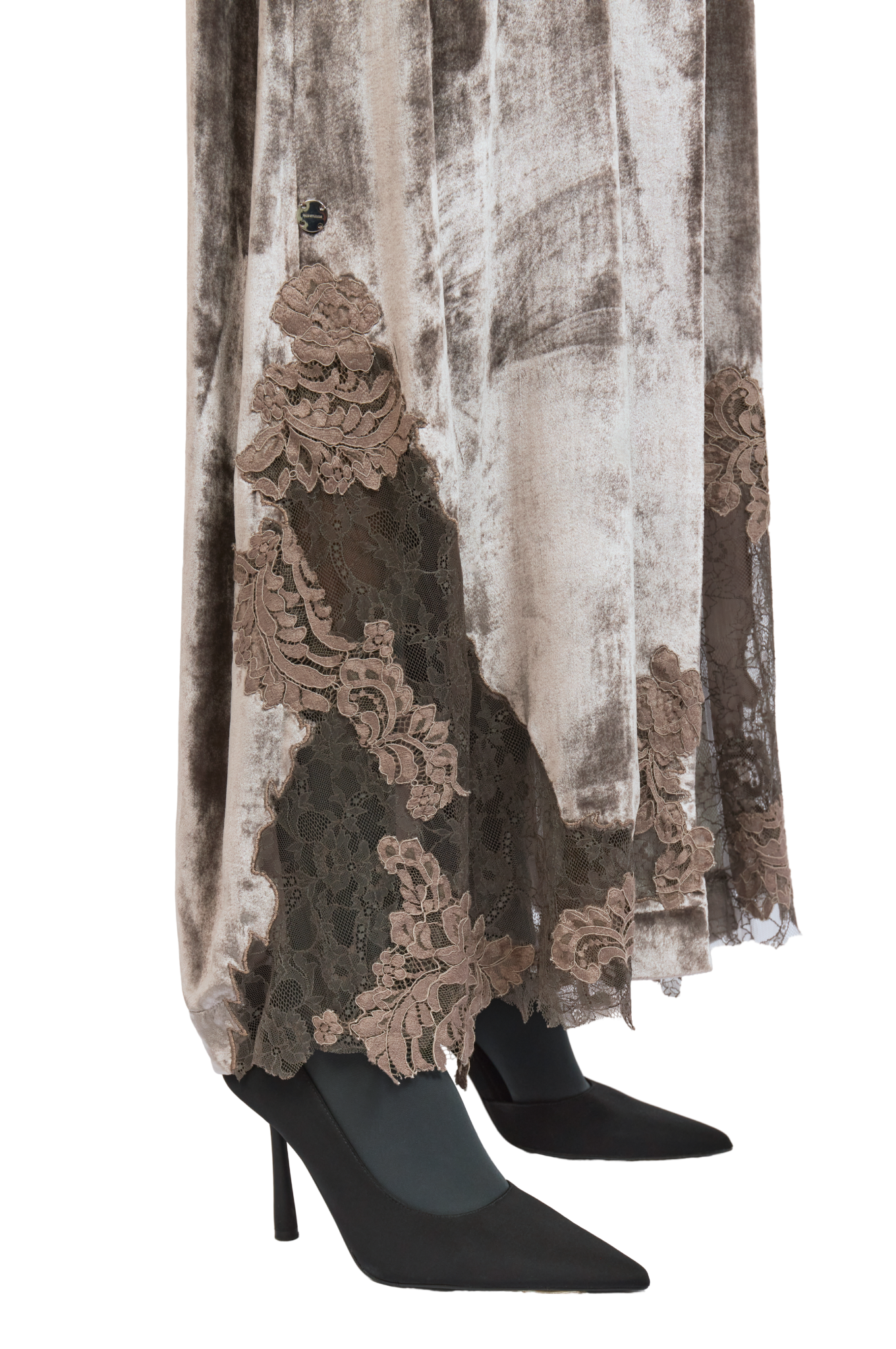 Exuding quiet elegance, the Kia Abaya is crafted from luxurious velvet, offering a rich texture and graceful drape. Its straight-cut silhouette delivers a clean, flattering fit, while delicate lace patchwork is thoughtfully placed throughout the design, creating a subtle contrast that adds depth and refinement.