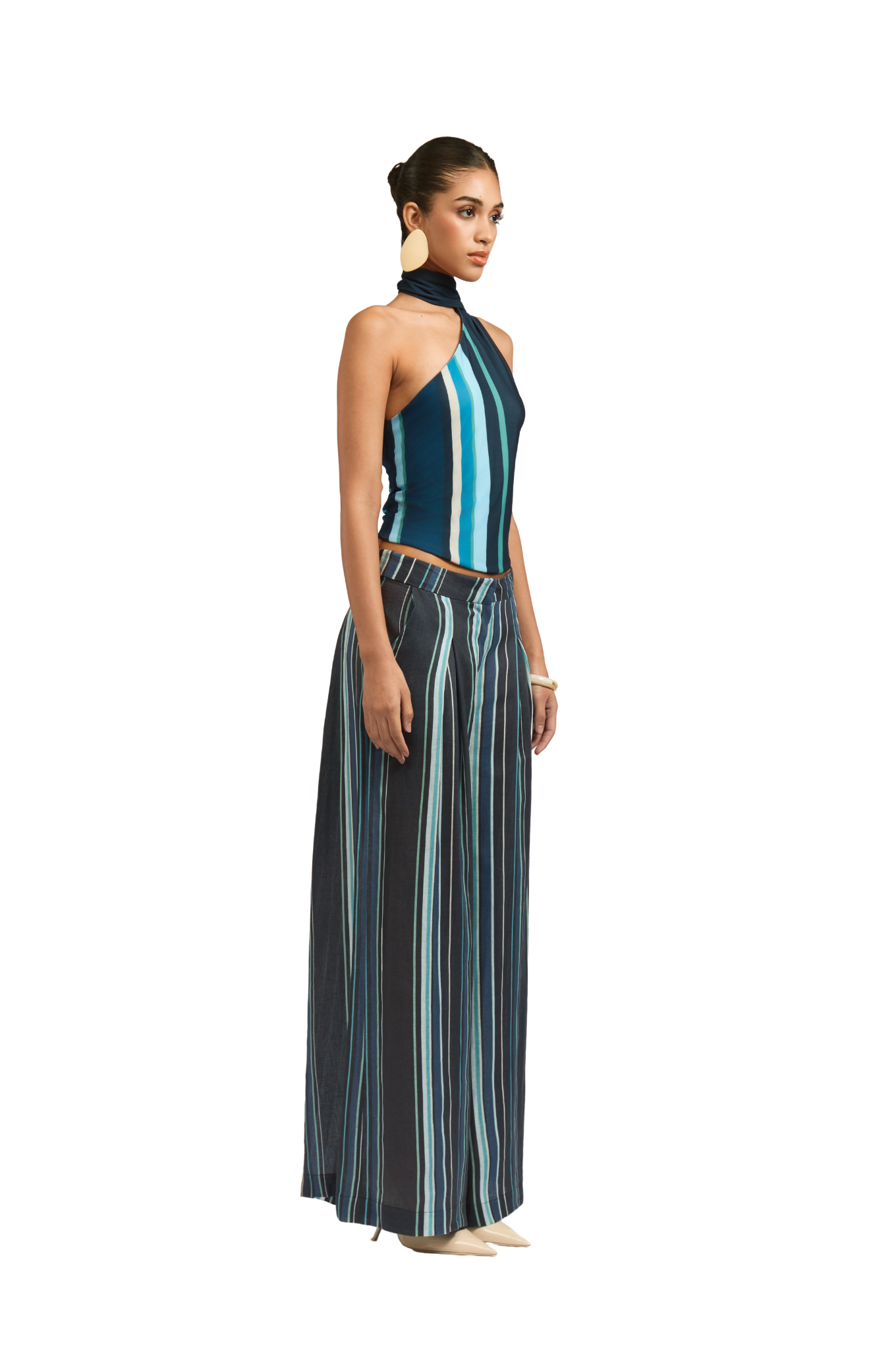 Crafted from breathable striped linen, the Willow pant features a relaxed, baggy cut with soft pleats. The blue tone adds a classic, effortless vibe, making it a go-to for easy, elevated styling.