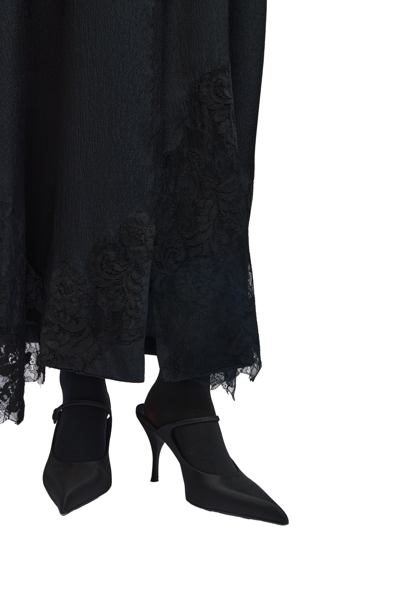Paired with a wrinkled chiffon sheila, finished with matching black lace detailing.